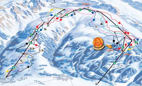 Our mountain hut is at an altitude of 1400m and right at the slopes (ski-in/ski-out). The ski area is not super big and not super small. There are several skilifts, chair lifts and a cable cars. Mainly blue and red slopes but also some black and ski routes. Total vertical drop is around 1.200m (1.700m if the slope all the way to the village is open but that’s not all to often) The hut can be reached over a black slope, a red slope and over an easy ‘skiweg’ and to get away from the hut you’ll have to use a towbar skilift. That makes this Crazy Snow Camp not suitable for absolute beginners.