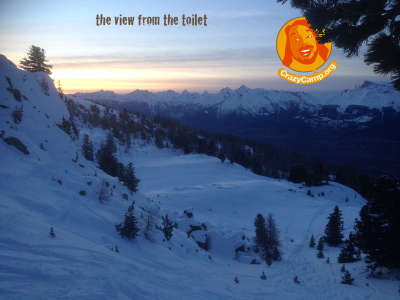 At the end of the day and in the evenings we will be automatically together (we’re high on the slopes, there is nowhere else to go!) so we will make our own après ski. This will start with cooking, eating and cleaning together. There will be crazy group games, yoga-ish stuff and so on. And let’s not forget the unique Crazy Camp Mountain Sauna! Basically everybody is expected to participate in the group life at the end of the day and in the evening (faq).